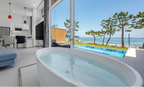 특징 : 요즘 핫한 풀 빌라죠. 윗 사진 몇 장만으로 설명을 다 한 것 같은 기분이네요. 가격대가 부담이 되지 않으신다면 루미너스를 선택하셔도 전혀 후회 없으실 것 같습니다. 사정상 해외로 여행을 못 가더라도이 곳에서의 사진 한 장이면 해외여행의 아쉬움을 충분히 달래실 수 있을 것 같습니다. 루미너스에는 고급 어메니티와 개별 바비큐, 개별 오션뷰 수영장, 오션뷰 욕조가 있는데요 내부는 깔끔함을 담고 있어 가족 혹은 연인끼리 누구와 가도 전혀 어색함 없이 즐겁게 즐기실 수 있습니다.