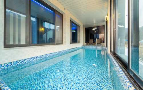 특징 : 모던하고 고급스러운 자재로 실내 인테리어를 꾸며놓아 남녀노소 모두 편안하게 쉬시다 가실 수 있습니다. 넓고 깊은 개별 수영장은 온수풀도 가능하며, 수영장 바로 옆 개별 스파가 있어서 더 편리하게 사용하실 수 있습니다. 또한 풀사이드 바베큐는 국내 최초 원적외선 이동식 그릴로 연기가 안나서 실내에서도 편하게 바베큐를 즐기실 수 있는 것이 장점입니다.