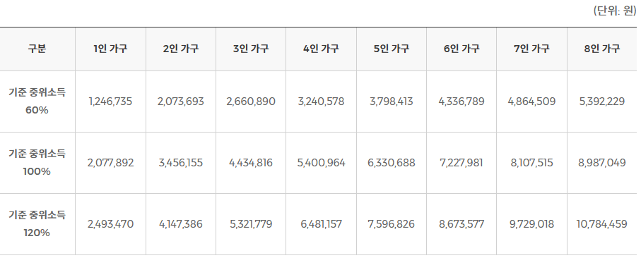 - 신청한 본인의 월평균 총소득이 1인 가구 기준 중위소득 60%(23년 1,246,735원)를 넘는 자