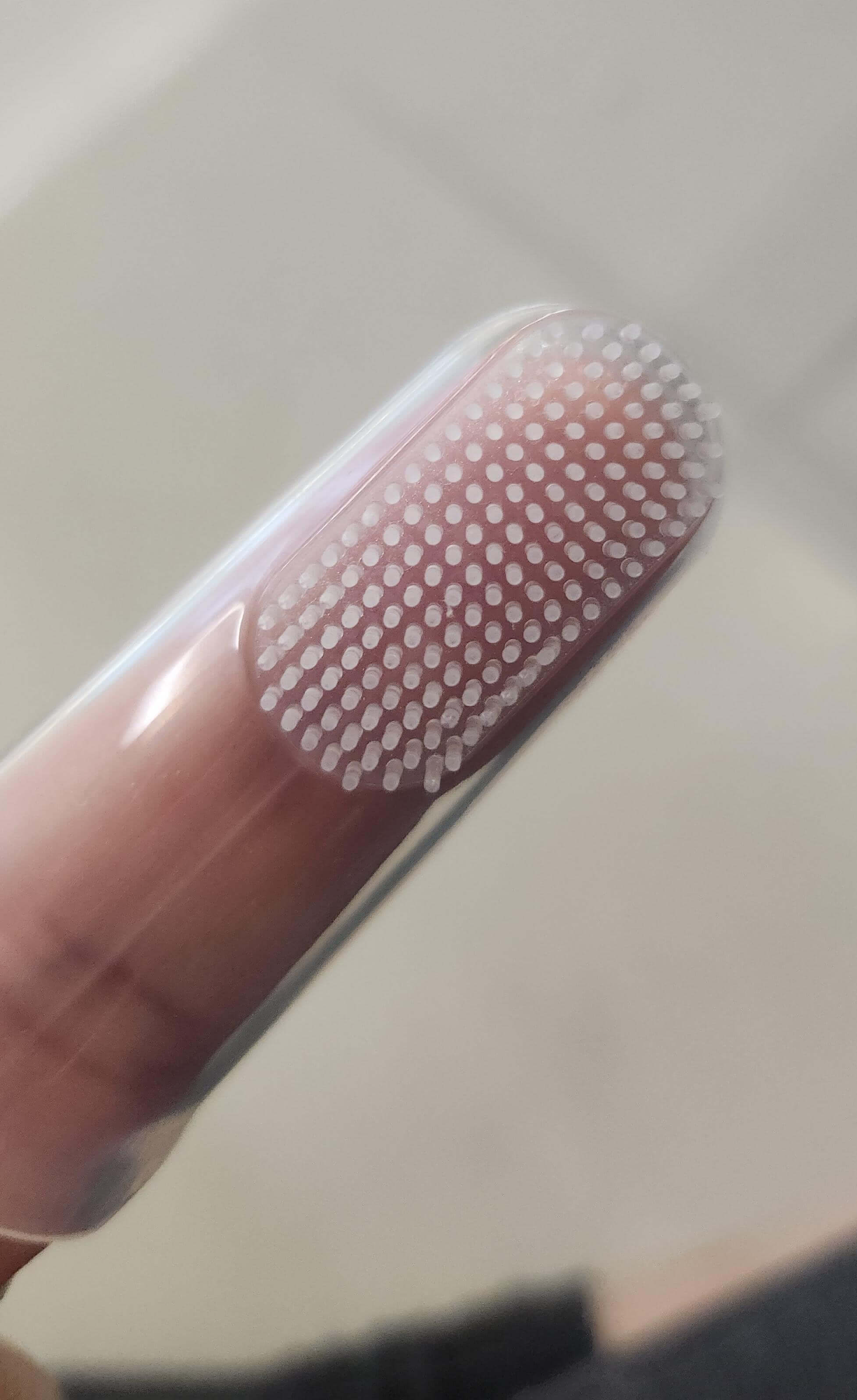 얼핏 보기에 칫솔모가 약간 딱딱해 보이기도 하지만 실제로 만져보시면 매우 부드럽습니다. 아기 잇몸에 해도 전혀 무리가 없을 정도에요. 그리고 실리콘이라 몰랑몰랑해서 아기 칫솔질 시킬 때 거부반응이 크게 없습니다. 그래도 어쨌든 입안에 들어와서 자꾸 치아를 비벼대니 불편해 할 수도 있는데 이럴 때는 장난치듯 칫솔을 넣었다 뺏다 하면서 조금씩 칫솔질을 해주시면 됩니다.