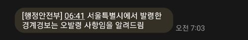 간담을 서늘하게 하는 오발령 문자였습니다.