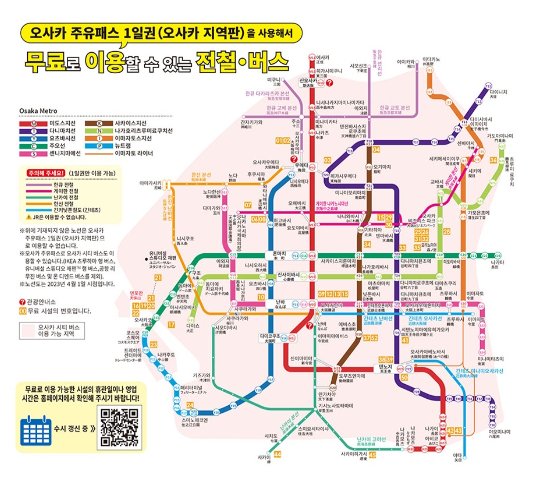 사용불가 노선 : 간사이 공항 리무진 버스, 유니터셜 스튜디오 라인, 유니버셜 스튜디오 재팬셔틀버스, JR라인