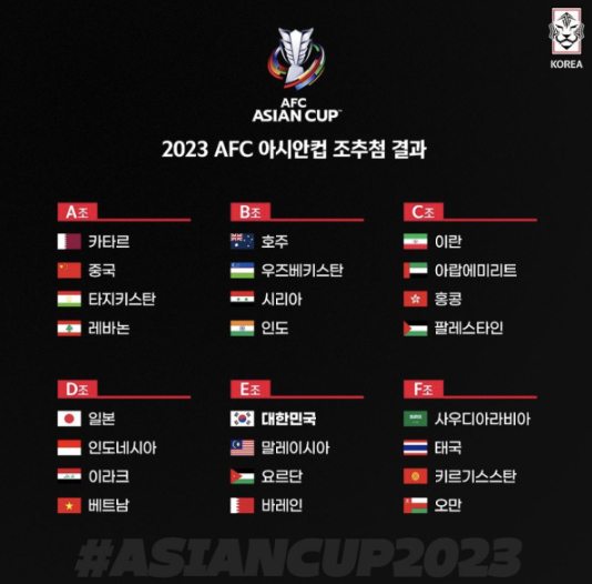 아시안컵 E조 경기일정과 축구 대표팀 명단